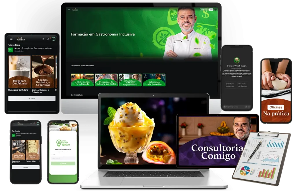 Acesso a planilhas prontas, artes para seu negócio, aplicativo mapa sem glúten e até consultoria personalizada.