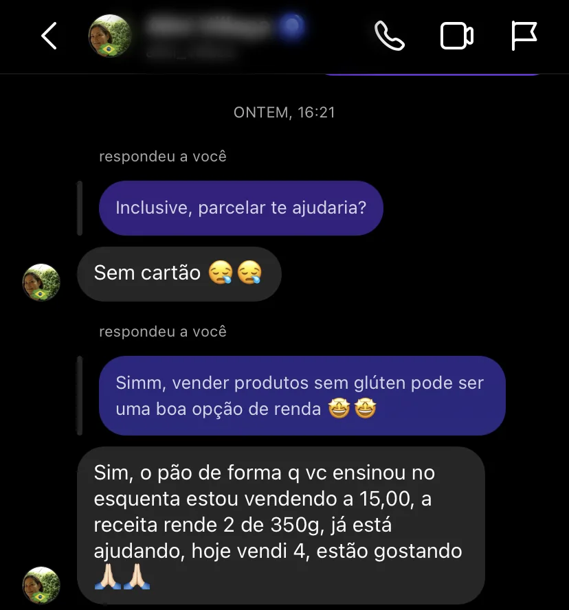 Sessões exclusivas comigo para tirar dúvidas, aprender novidades e acelerar seu crescimento na gastronomia inclusiva.